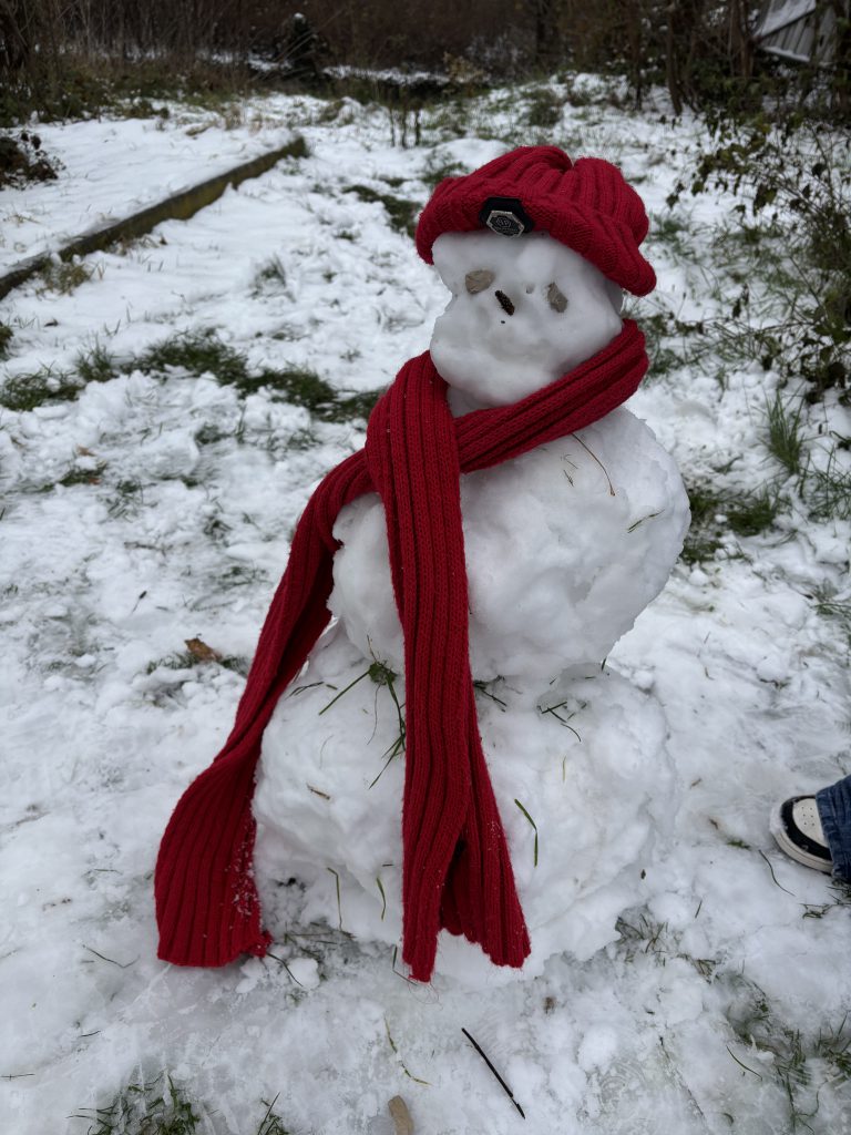 Auf dem Rückweg hatte der Winter noch eine Überraschung parat: Aus dem frischen Schnee entstand gemeinsam Schneemänner.
