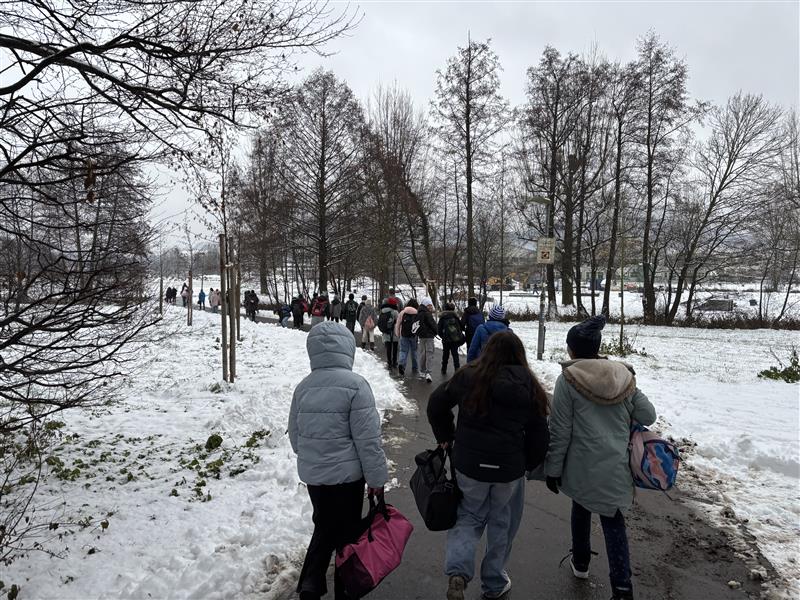 Am Montag, den 24. November 2025, machten die fünften Klassen gemeinsam mit Frau Walter, Frau Salb und Herrn Tröschel einen besonderen Ausflug in die Therme Hersbruck. Schon die Fahrt mit der S-Bahn war ein Erlebnis: Draußen zog eine verschneite Winterlandschaft vorbei, und der Weg durch den frischen Schnee zur Therme sorgte für echte Winterstimmung.